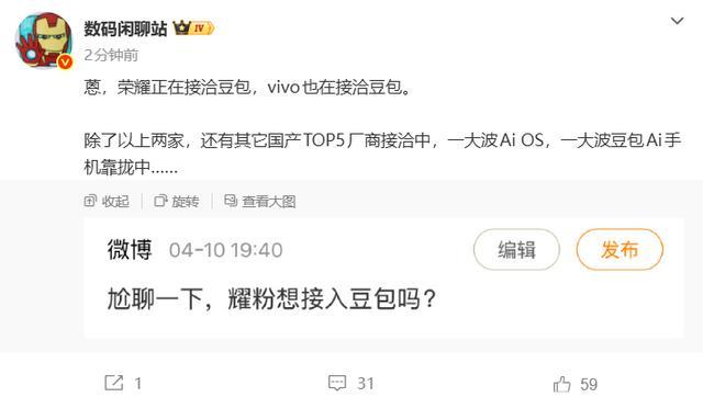 4月13日消息,据博主 @数码闲聊站 透露,荣耀、vivo 正与豆包展开合作接洽,此外还有国产 TOP5 手机厂商在推进相关洽谈配资专业股票投资,后续将有大批搭载豆包的 AI OS 及 AI 手机推向市场。